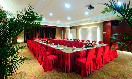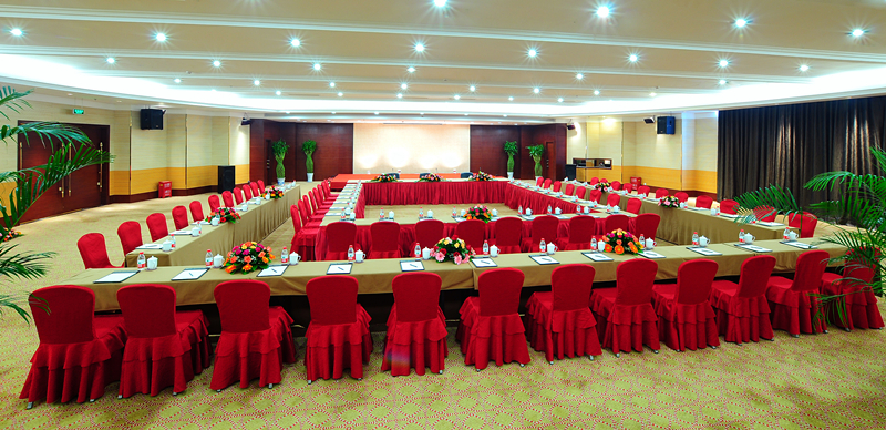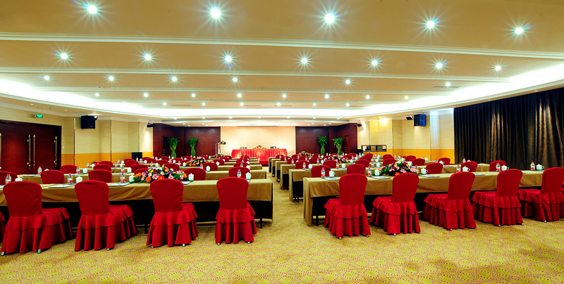 国际宴会厅可举办各种大型宴会、婚宴、会议、酒会、展示会等。建筑面积475平方米,可容纳500人共同用餐,是各种大型、会议、酒会、展示会等的理想选择。另外酒店拥有各种类型会议室12个,拥有会议投影仪、全彩LED背景屏、同声传译系统等会议设施。
